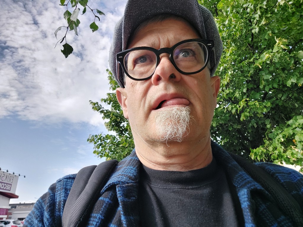 Marie blir av lättförståeliga skäl irriterad. ”In med tungan!” ”Du ser så jävla dum ut!” Jag förstår det. Jag ser dummare ut än vanligt. Det är inte bra för mitt rykte. Vill vara snygg, sofistikerad och lite gubbcool. Sen står man där och blänger med sin jävla tunga mellan läpparna. Lik förbannat! Som en IDIOT!